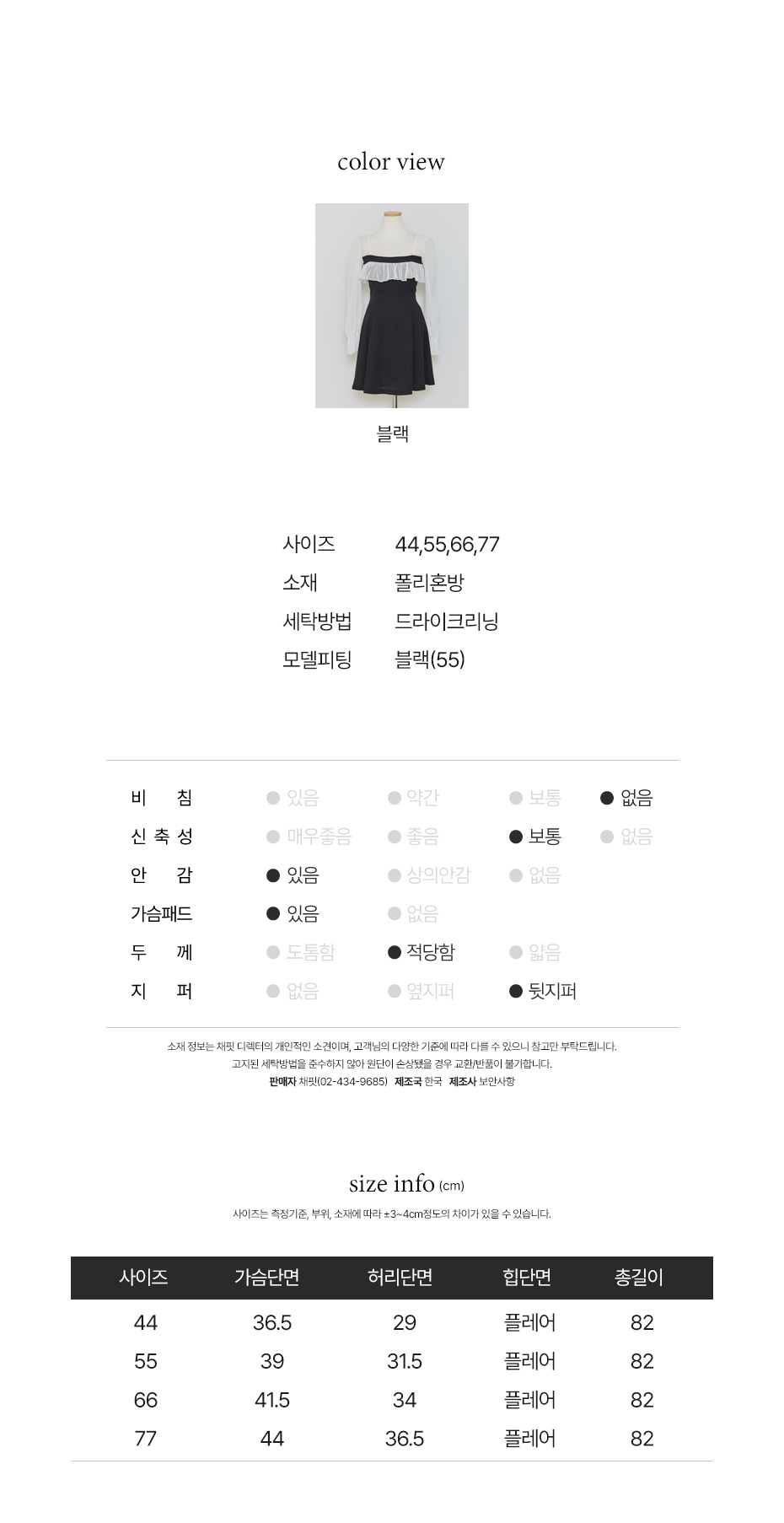 모나 반팔 원피스 블랙55사이즈 + 블랙66사이즈