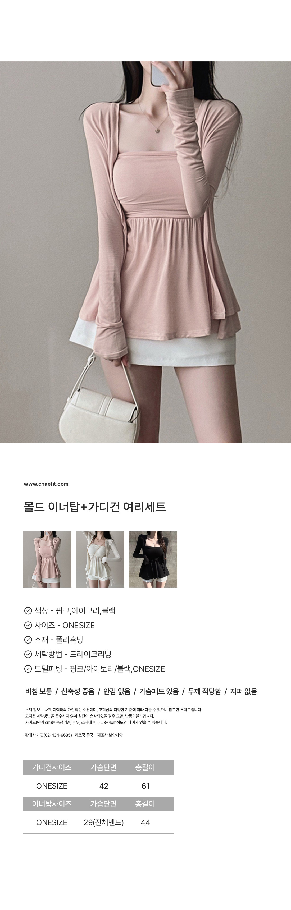 이너탑+가디건세트로 여리한 느낌 몰드브라 내장 *44~66추천*