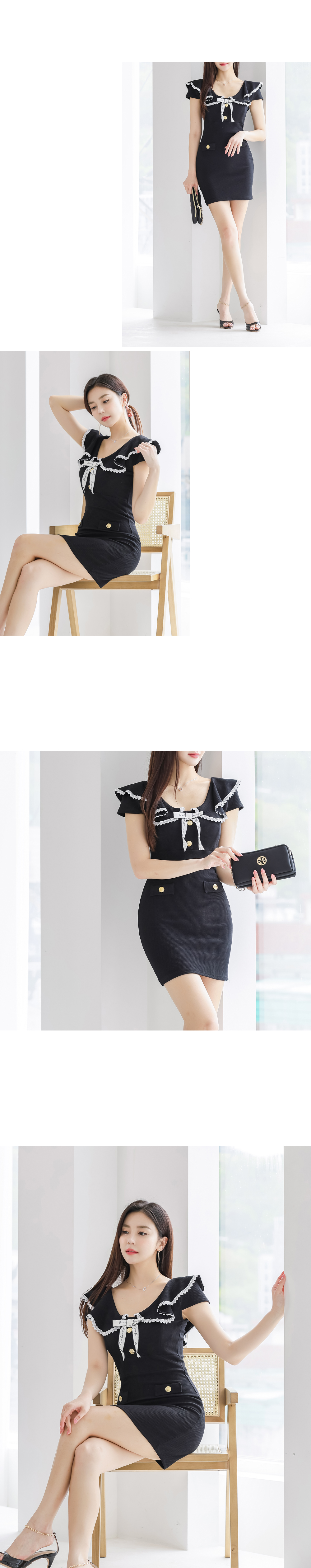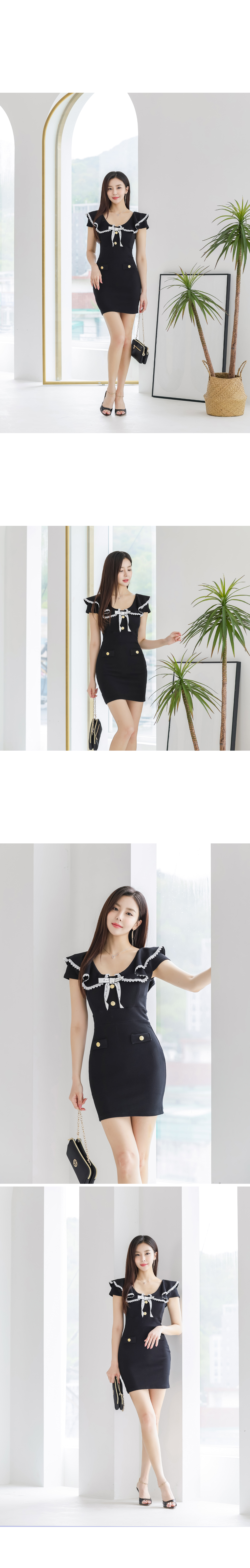 등까지 이어진 와이드한 프릴카라가 매력적인 미니원피스♥
