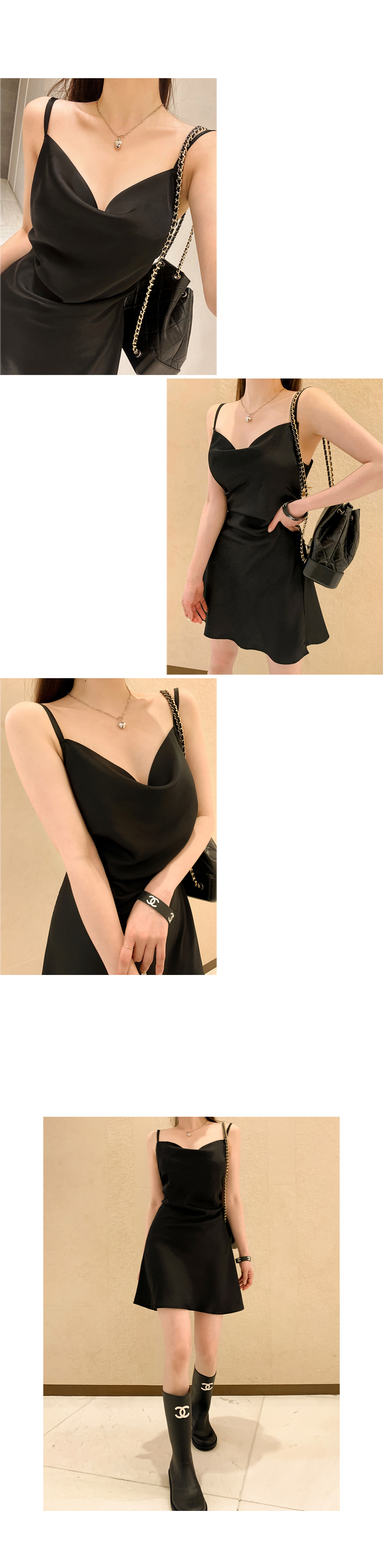 넥라인은 자연스럽게 드레이프지는 디자인으로