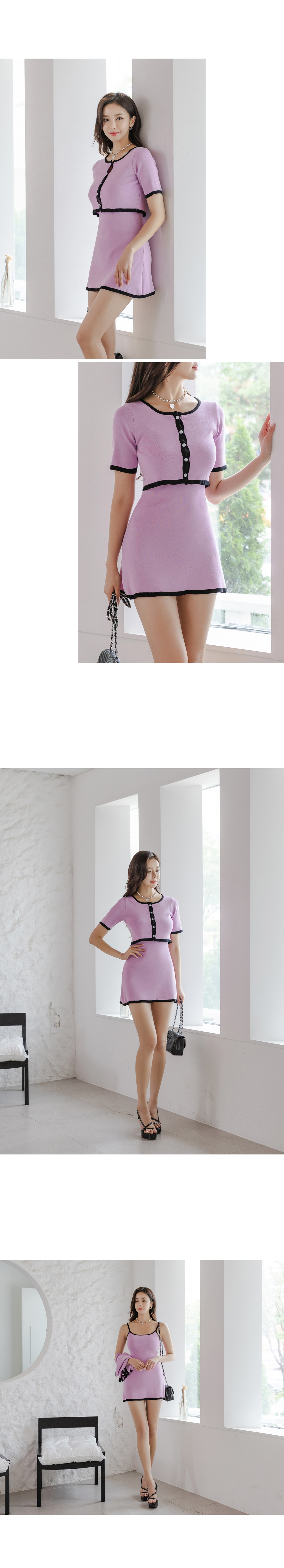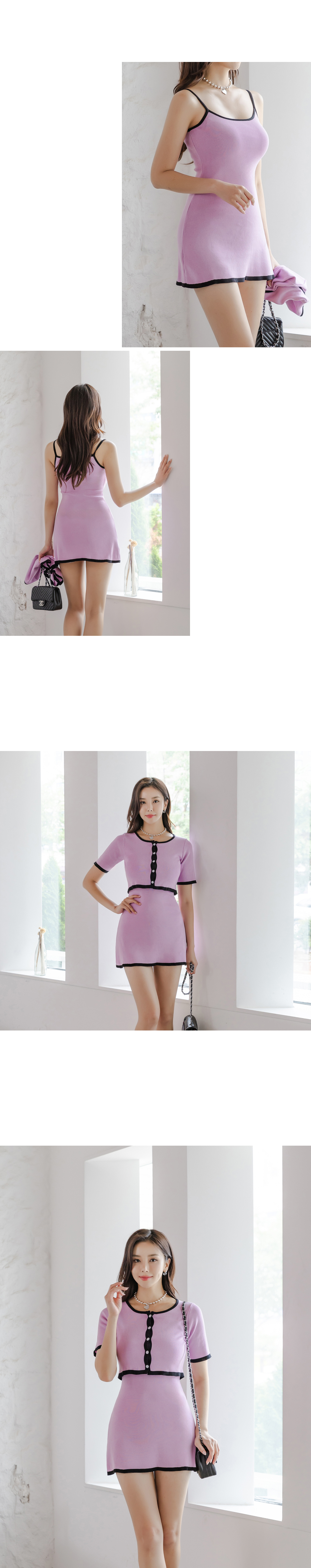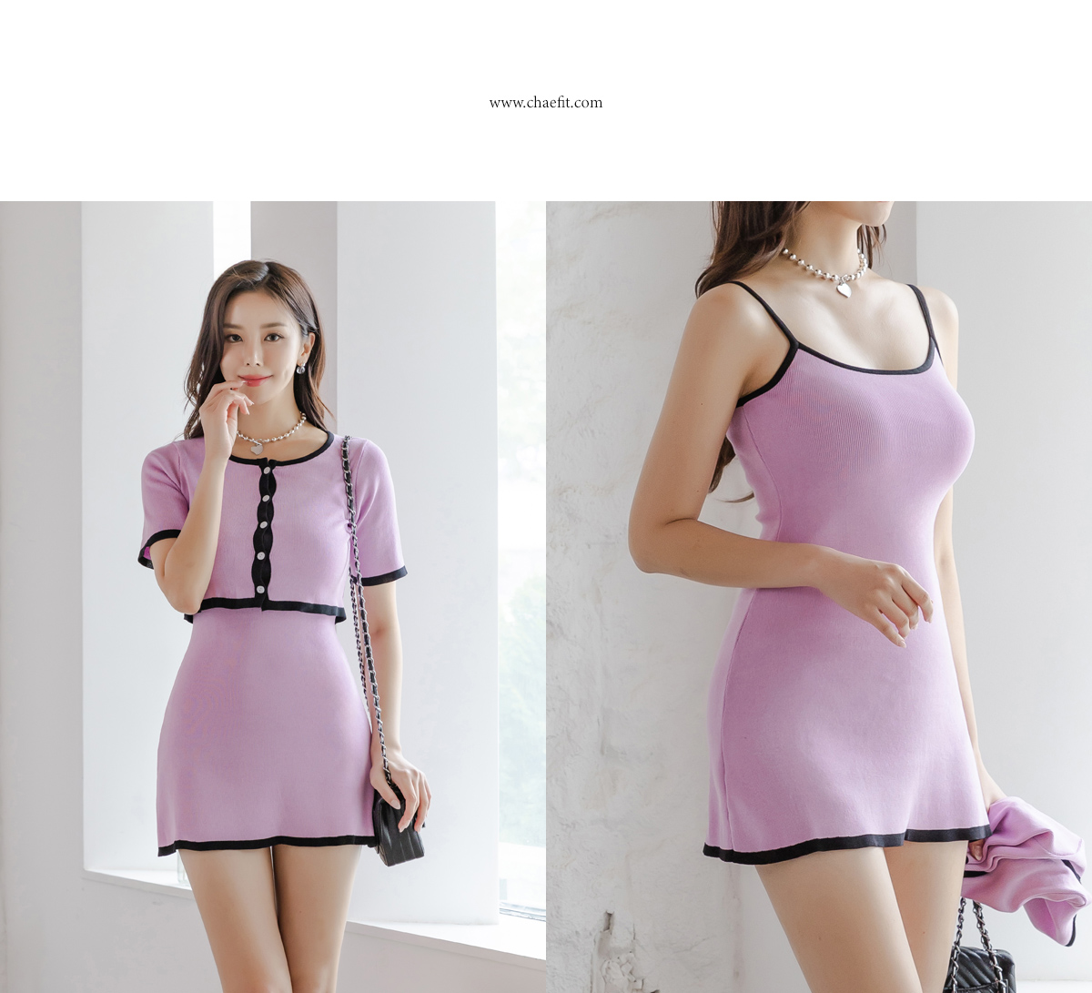 A라인 끈나시 원피스와 라운드넥 가디건 세트 ! *퍼플,블랙,아이보리*