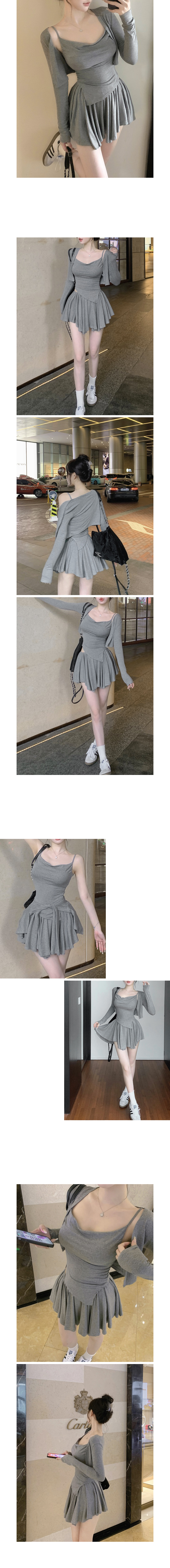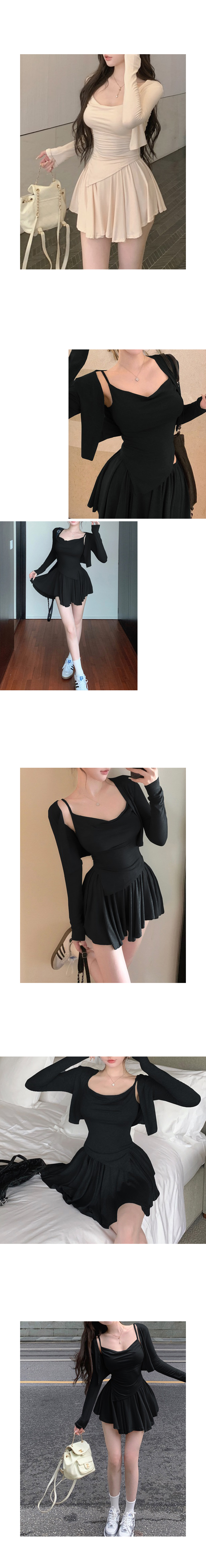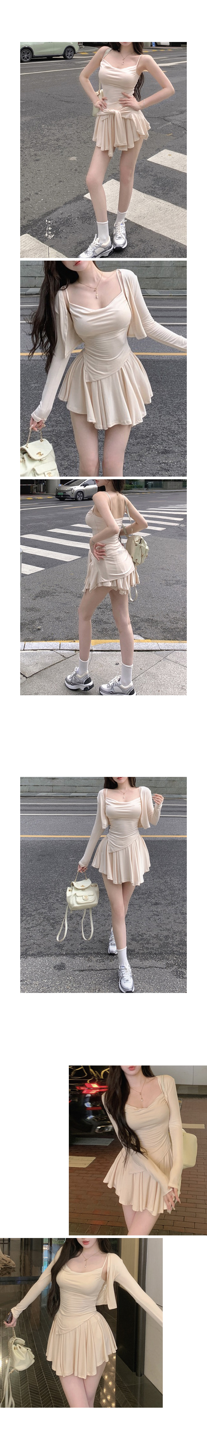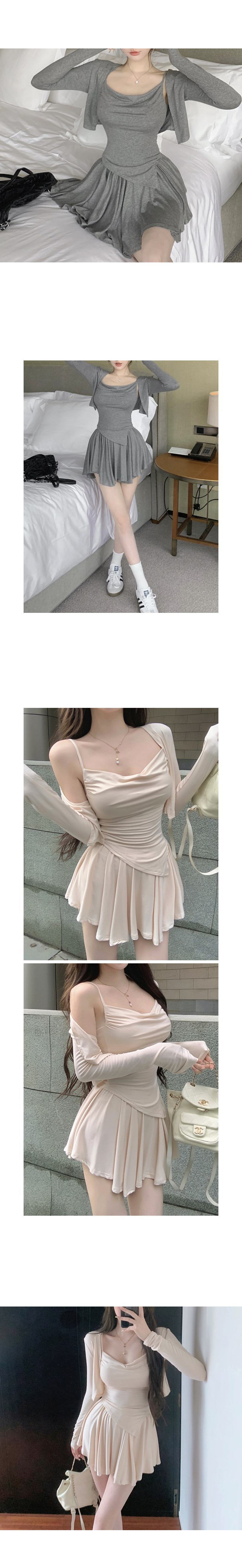 밴딩 플레어 스커트와 슬림끈나시+오픈가디건 세트 ! *그레이,베이지,블랙*