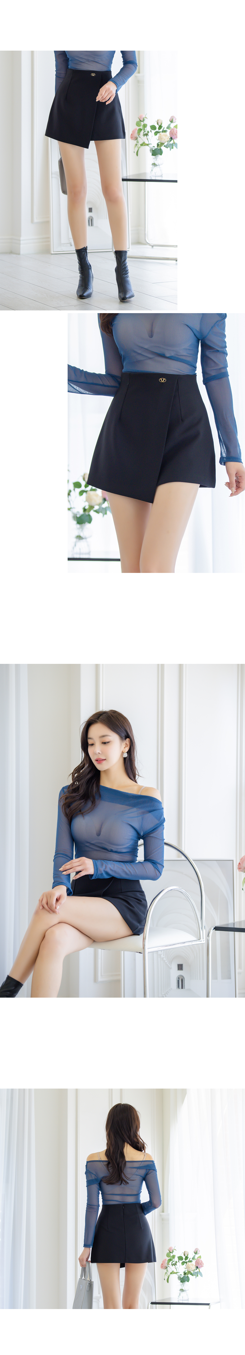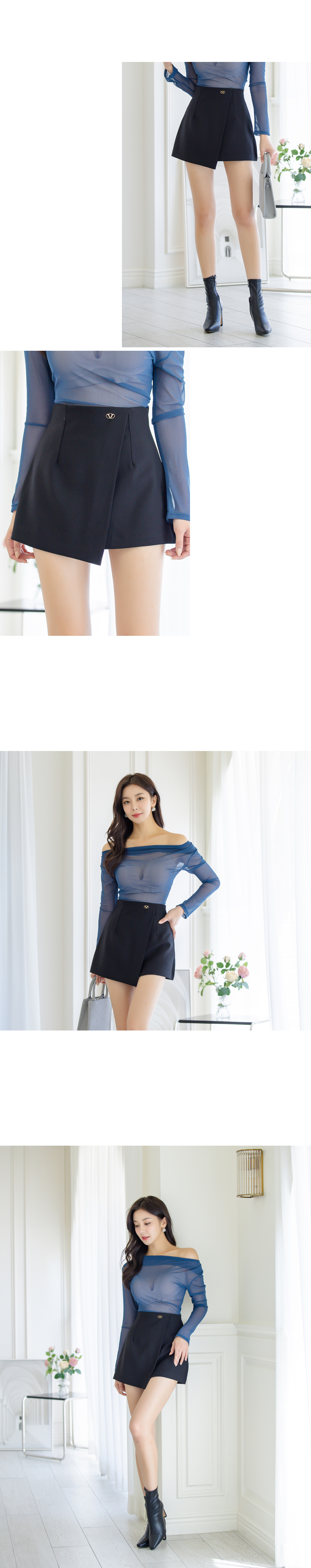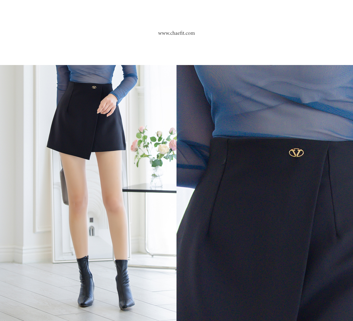 V장식 포인트가 매력적인 랩타입 미니스커트♥
