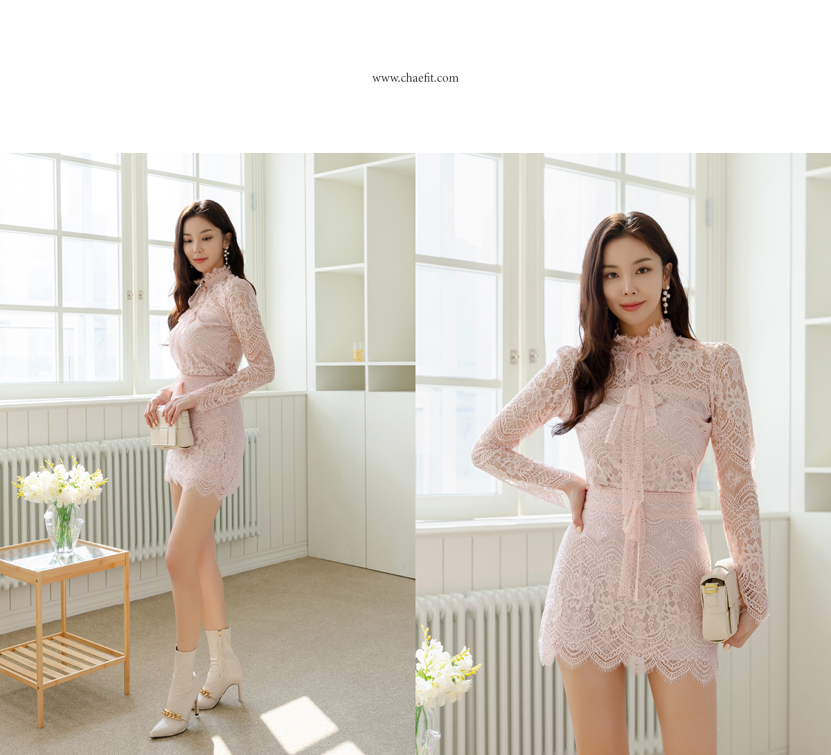 넥라인과 밑단, 소매 끝단 레이스 컷팅을