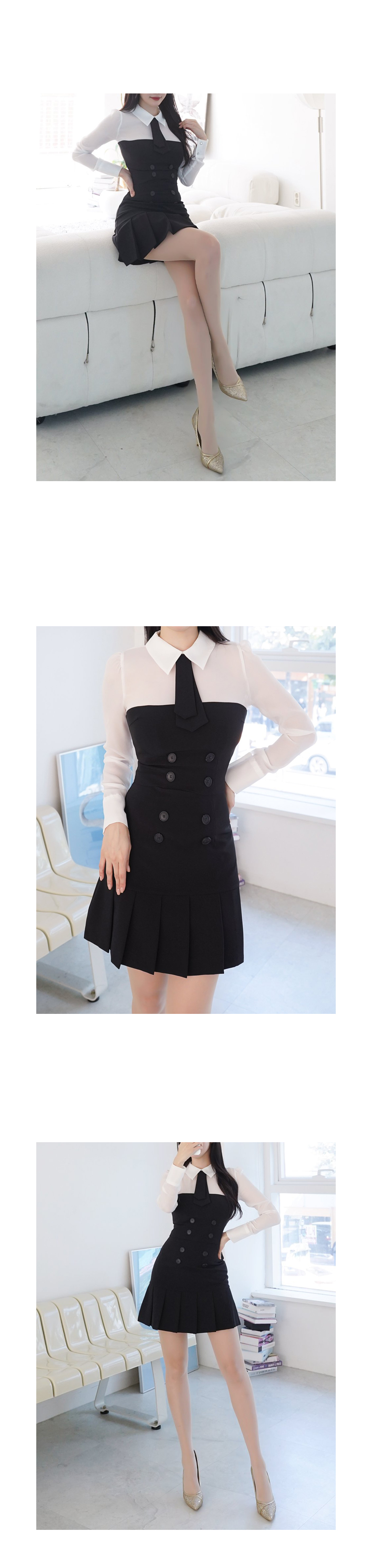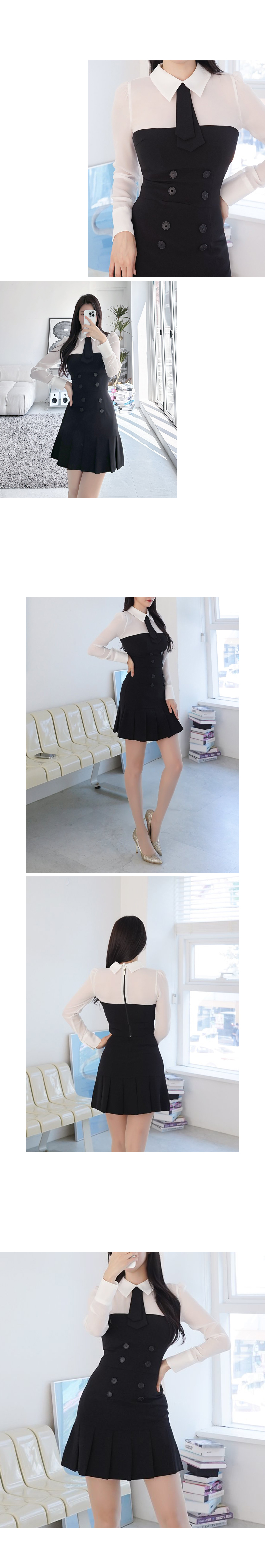 쉬폰배색 블라우스와 플리츠 스커트 세트 ! 발랄하고 어려보여요😉