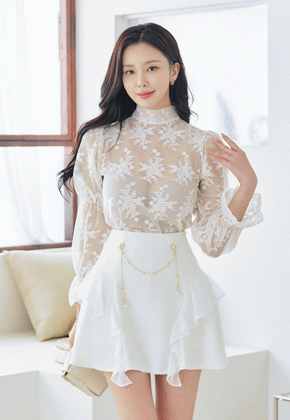 섬세한 레이스소재와 적당한 하이넥라인 이너와 함께 착용해도 좋아요~