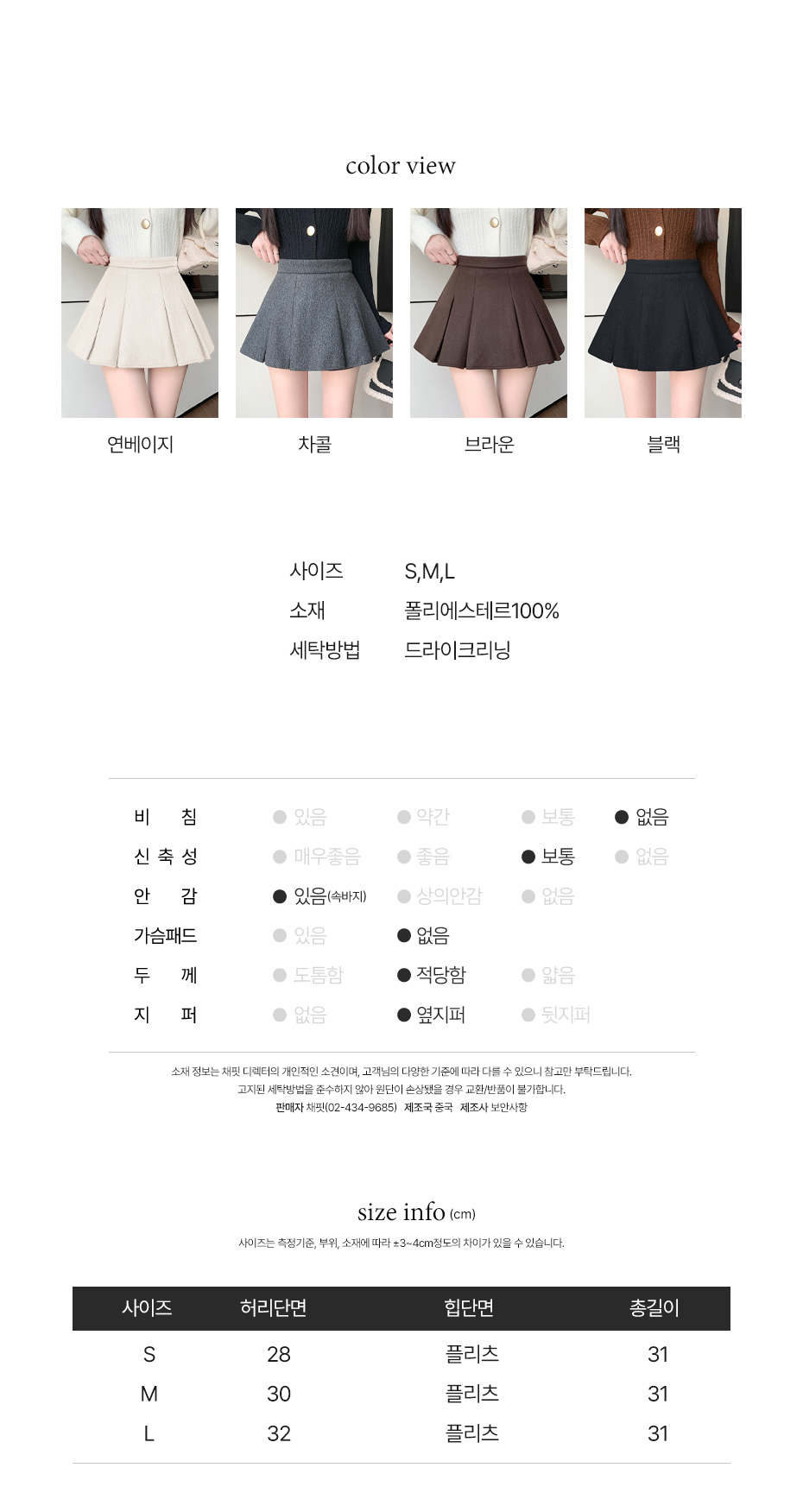 포근한 모직소재 깔끔한 플리츠라인 *S,M,L사이즈*