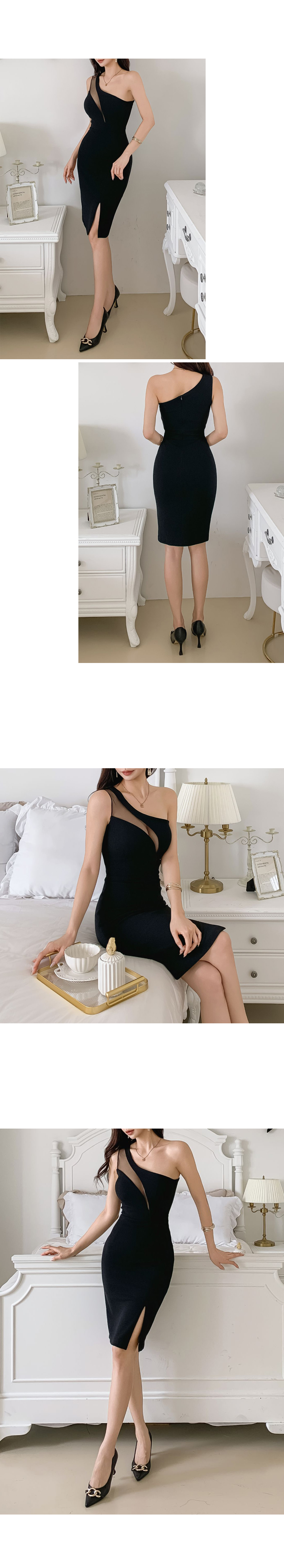 시크한 섹시미가 돋보이는 원숄더 트임 원피스! *44~77사이즈*
