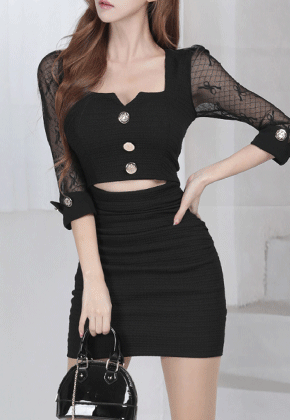 테인 소매시스루 원피스
