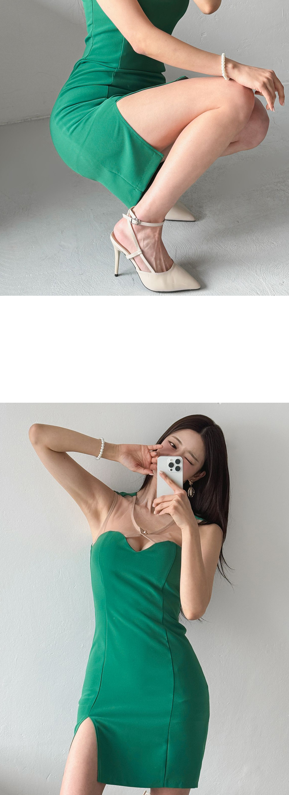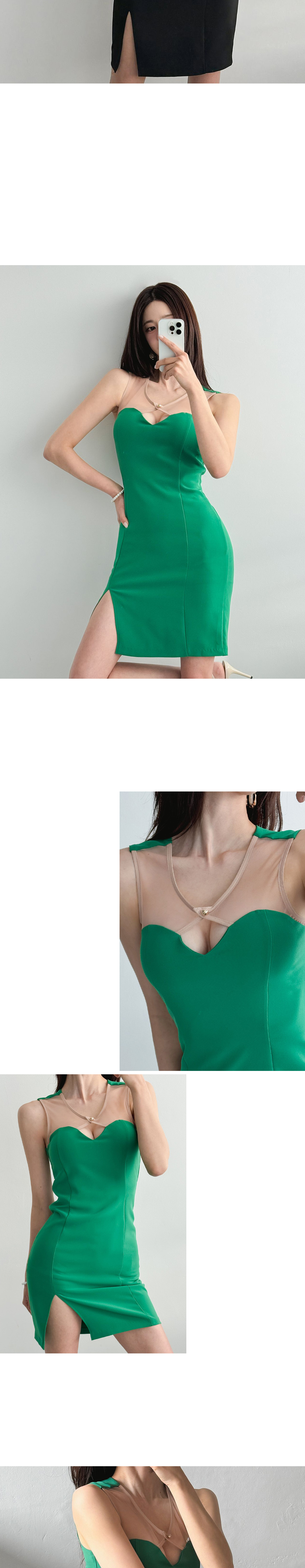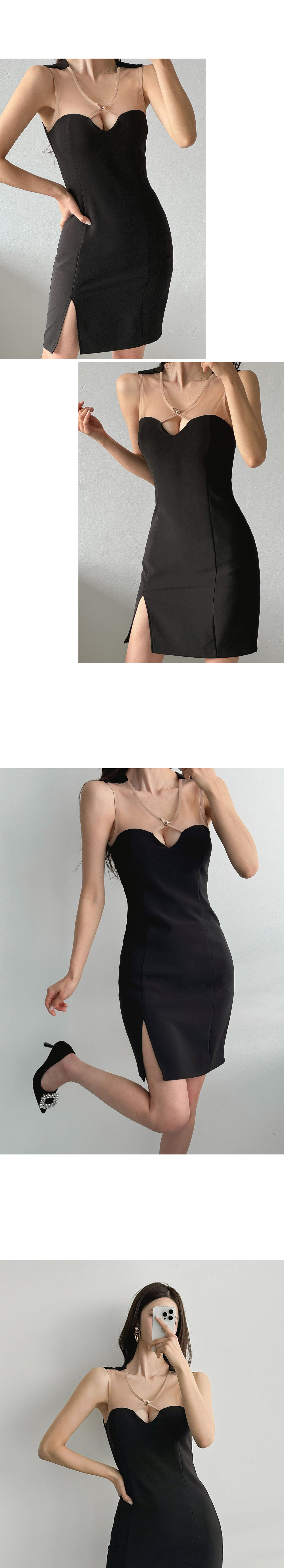 조니 배색망사 원피스