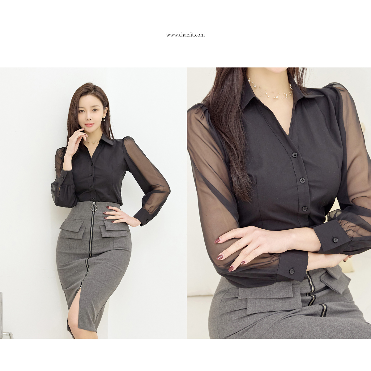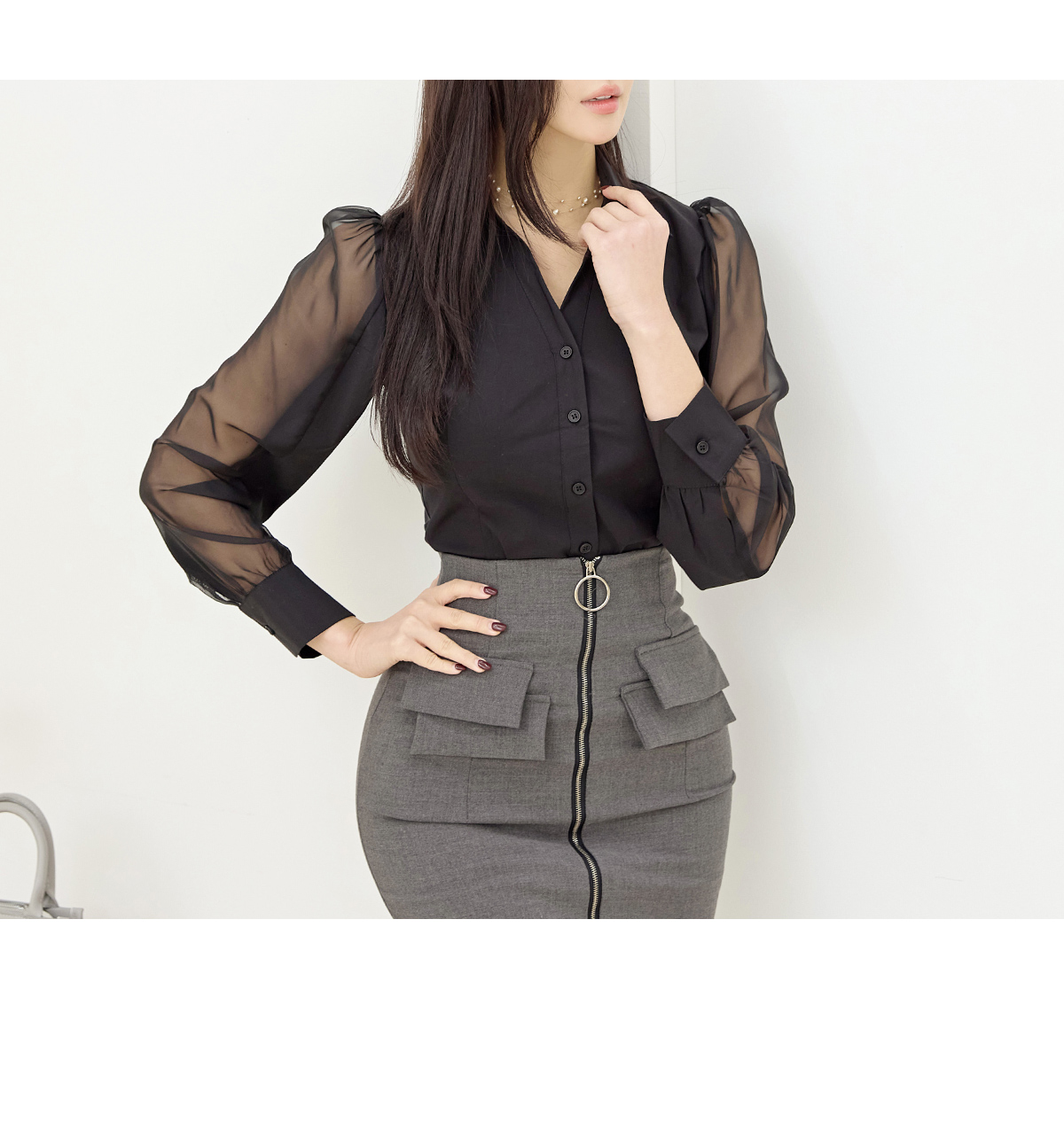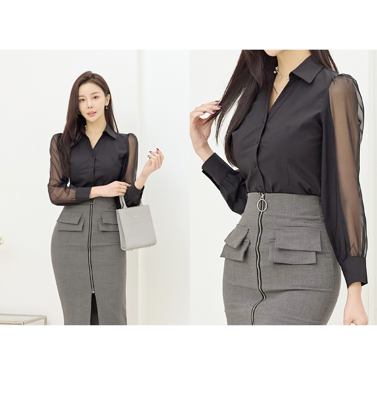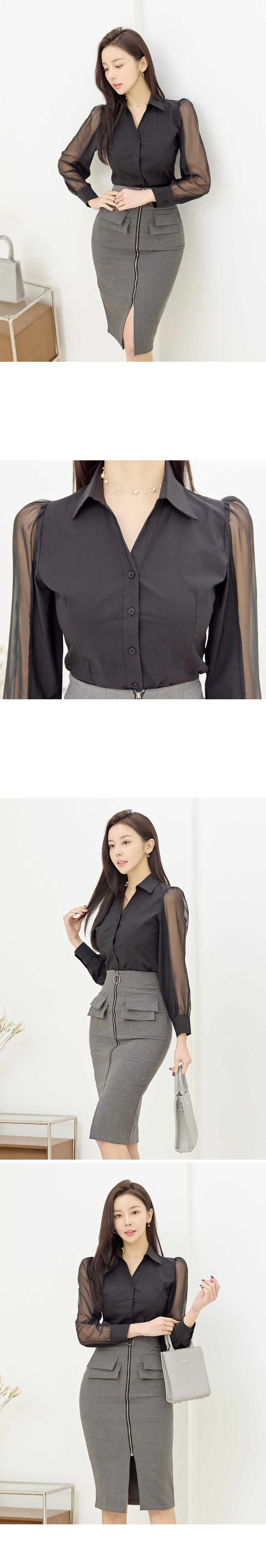로제타 소매시스루 블라우스
