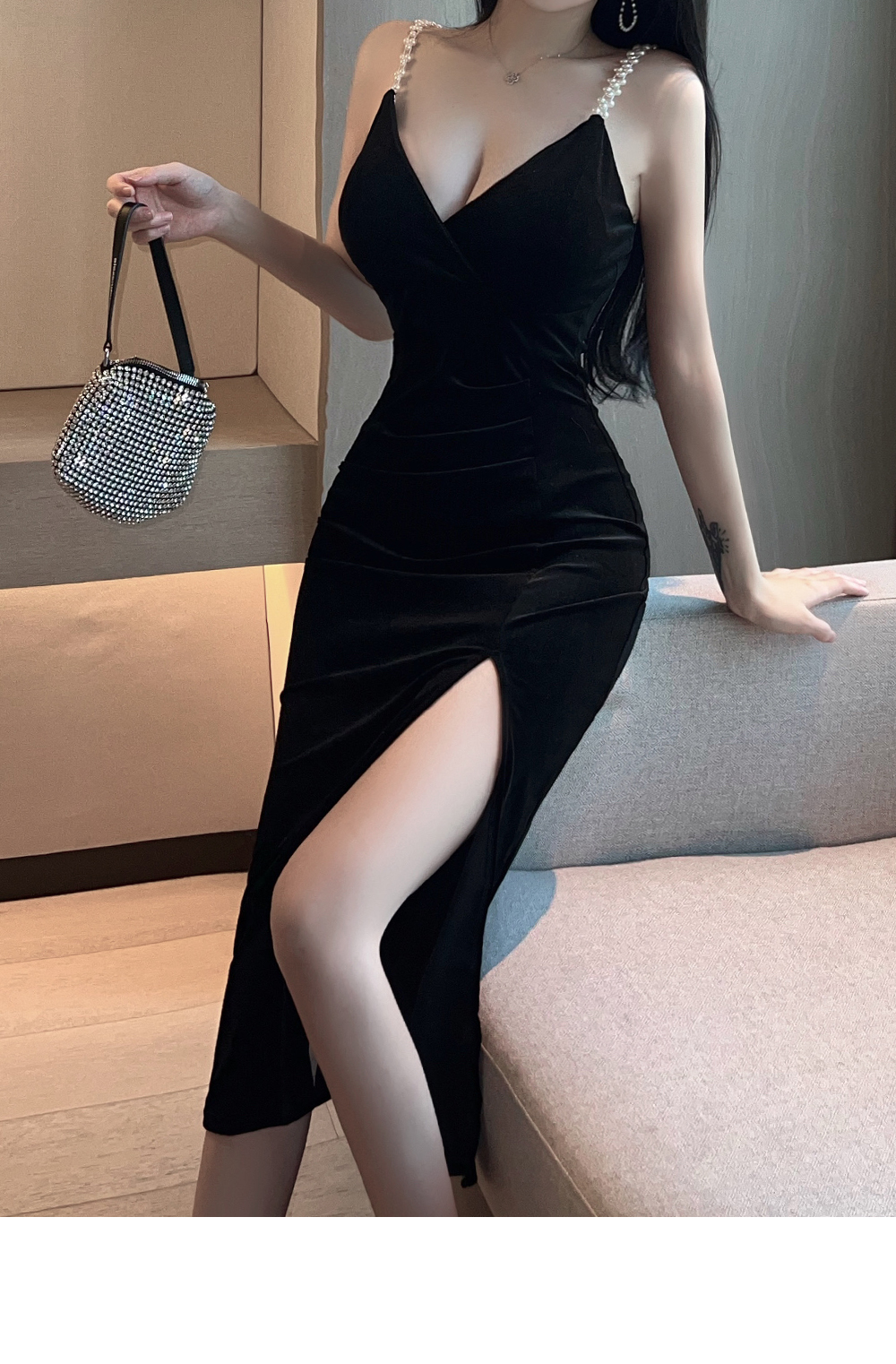 리치 벨벳롱트임 원피스