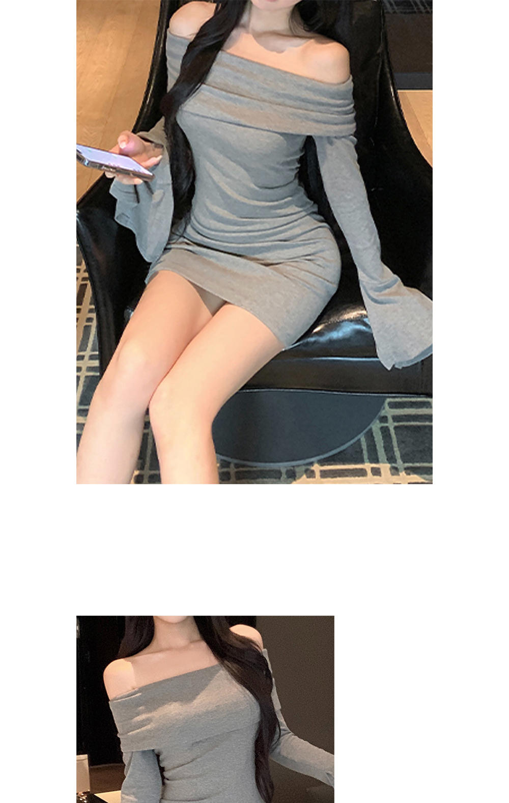 시플 소매절개오프 원피스