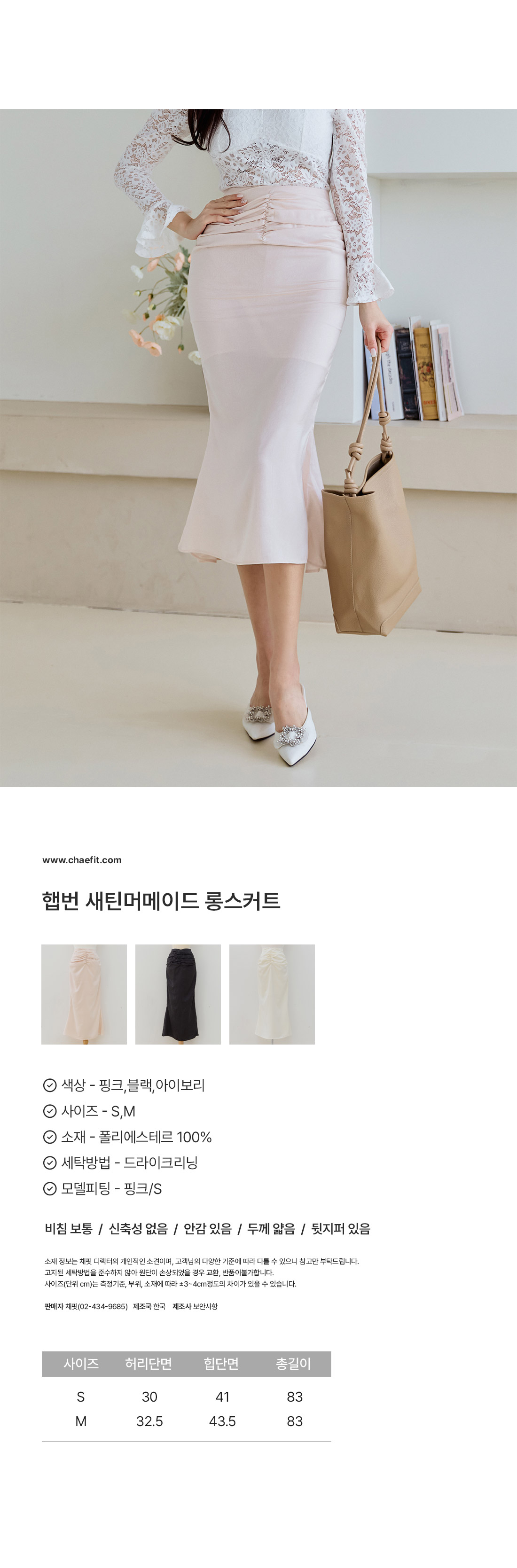 새틴소재와 머메이드디자인으로 여성스러움 극대화 실물이 더 이쁜 스커트에요!