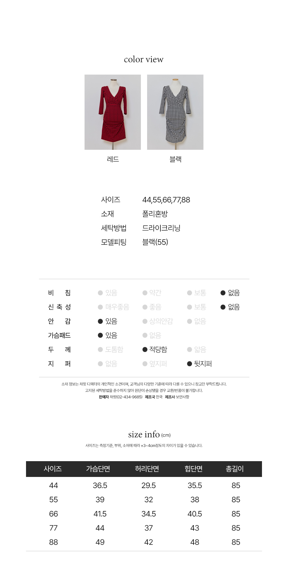 모나 반팔 원피스 블랙55사이즈 + 블랙66사이즈