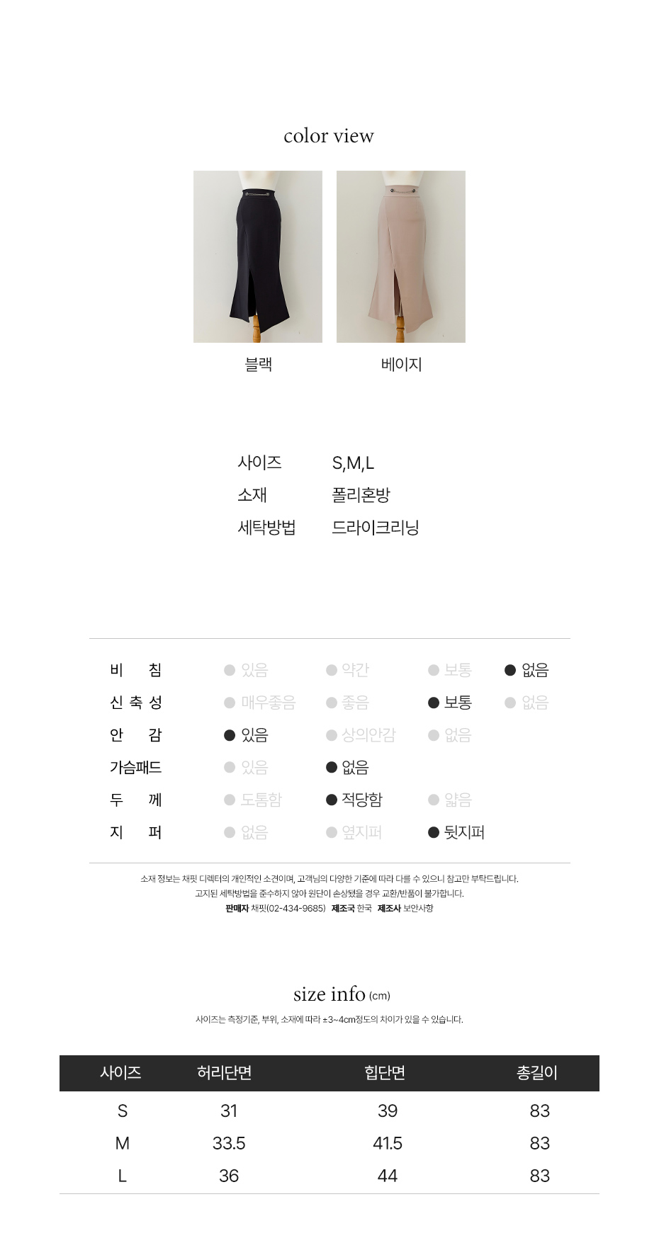머머이드 쉐입에 앞트임으로 활동성까지 갖췄어요! *S,M,L 사이즈*