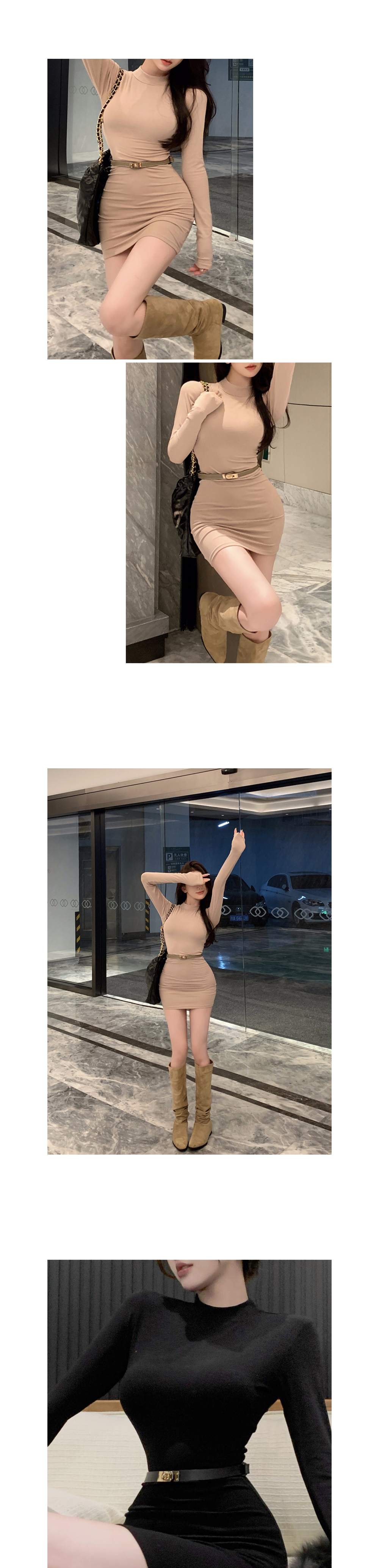 스판 긴발벨트 원피스