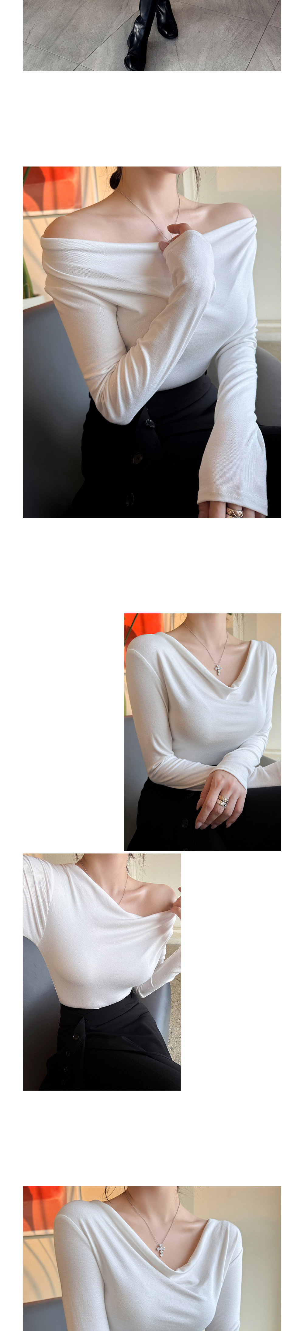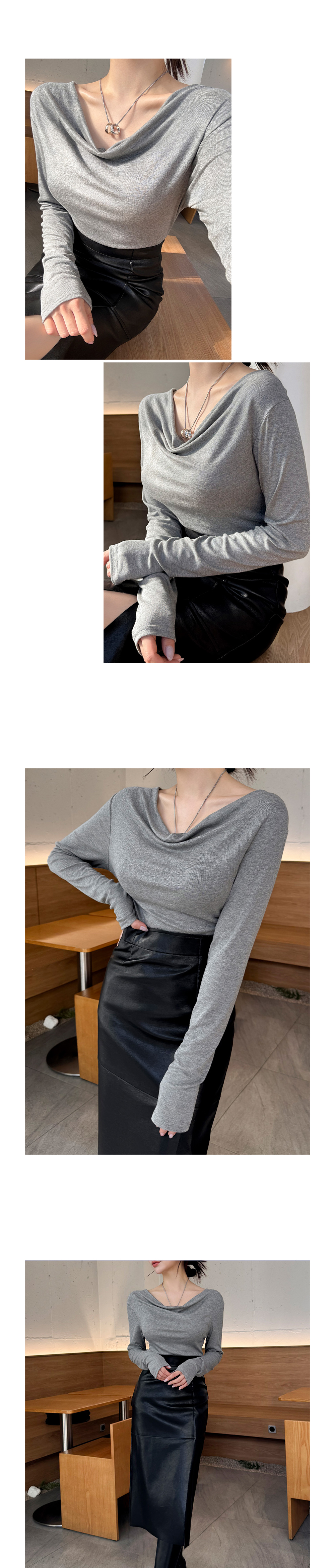 자연스럽게 드레이프 지는 넥라인으로