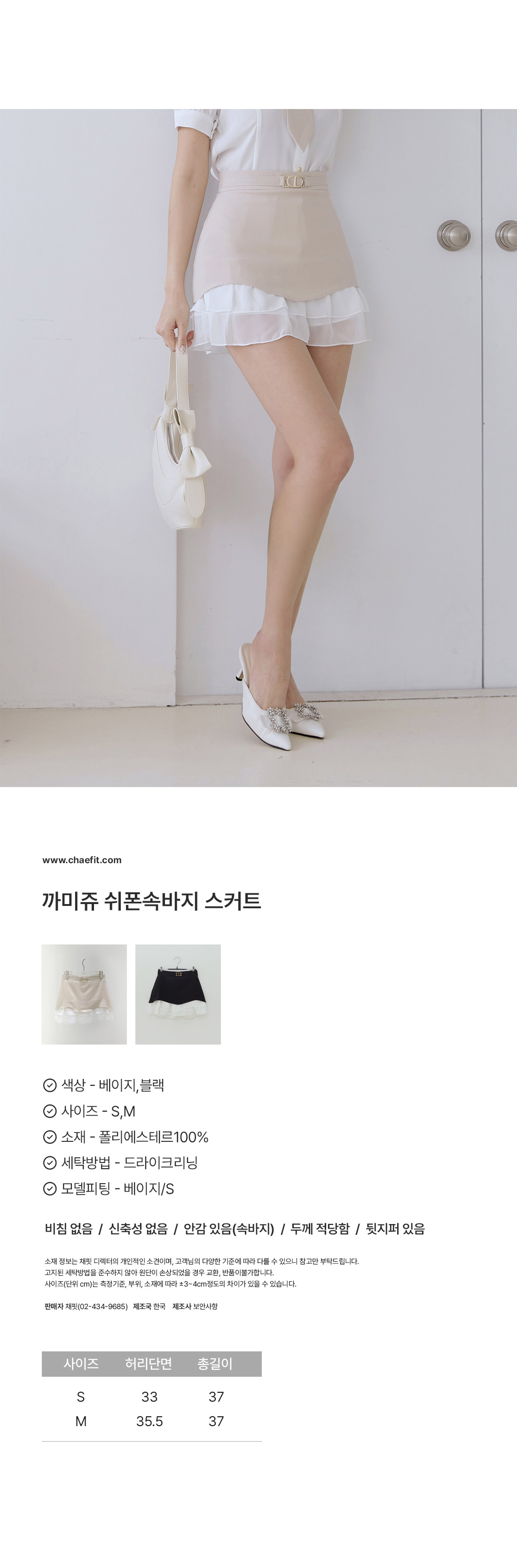 밑단쉬폰과 웨이브디자인으로 한층 여성스러워요~ *S,M 사이즈*