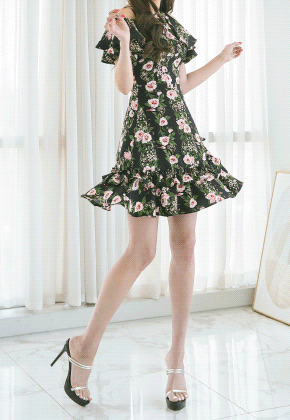 화려한 플라워 패턴으로 얼굴톤을 화사하게 밝혀드려요 -플레어라인에 이중프릴 디자인이 군살까지 쏙 !