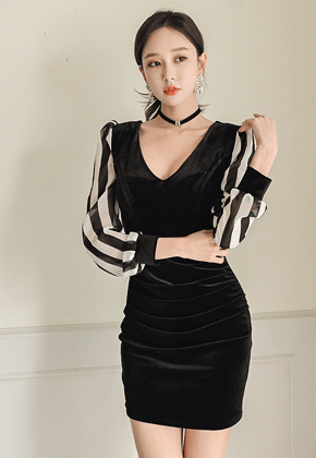 ◈주문폭주◈ 벨벳원단감에 스트라이프 소매라인이 늘씬한 무드를 연출 - 주문폭주 중으로 서둘러 주세요 !