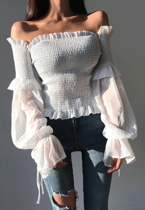쉬폰 스모크오프 블라우스