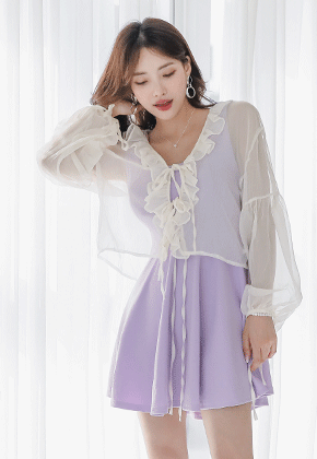 세줄 프릴시스루 가디건