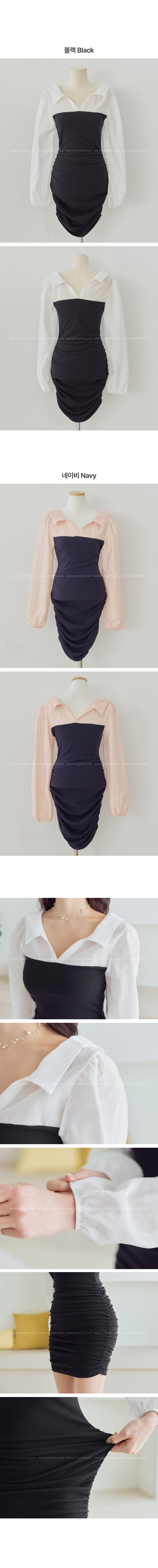 코니 배색셔츠 원피스
