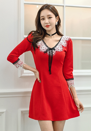 ◈주문폭주◈ 넥라인 레이스 포인트로 페미닌한 무드를- 플레어라인이 체형커버까지 업 !